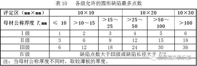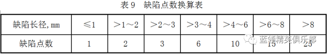 5.1.5.2 在圓形缺陷評定區(qū)內(nèi)或與圓形缺陷評定區(qū)邊界線相割的缺陷均應劃入評定區(qū)內(nèi)。將評定區(qū)內(nèi)的缺陷按表9的規(guī)定換算為點數(shù),按表10的規(guī)定評判焊接接頭的質(zhì)量級別!
